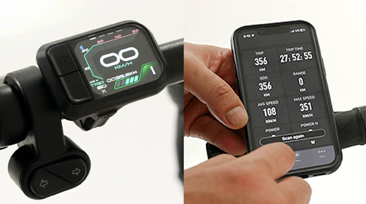The KOSMOS app and handlebar display let you take control of your bike as you monitor and view your trip information.